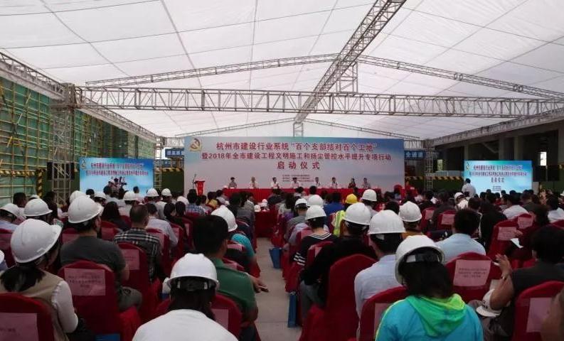 5月11日上午,由市建委主辦,江干區(qū)委區(qū)政府承辦的全市建設(shè)行業(yè)系統(tǒng)“百個(gè)支部結(jié)對百個(gè)工地”暨2018年全市建設(shè)工程文明施工和揚(yáng)塵管控水平提升專項(xiàng)行動(dòng)啟動(dòng)儀式在杭州國際商貿(mào)城單元G18-04-R21-02地塊農(nóng)轉(zhuǎn)非居民拆遷安置房項(xiàng)目現(xiàn)場舉行。