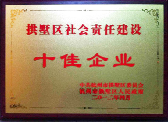 2012年4月26日,由拱墅區人民政府、拱墅區總工會主辦的“2012拱墅區勞動者之歌”主題活動隆重開幕。公司被拱墅區人民政府評為拱墅區“社會責任建設”十佳企業。