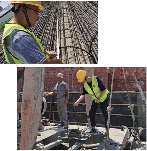 天空之城位于杭州市余杭區五常街道,為地鐵+物業上蓋開發模式,蓋上建筑位于地鐵5號線五常車輛段上蓋區。總建筑面積約20萬平方米。現場監理人員頭戴安全帽、頂著烈日緊張工作,汗水浸透了工作服。