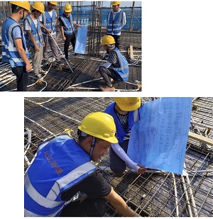 溫州萬科翡翠天地項目是公司在走出杭州,面向浙江發展目標下的新起點。盡管頂著接近40度的高溫,但為了工程質量和進度,他們仍堅持檢查和驗收,確保當天混凝土澆筑能按計劃進行,而衣物早已被汗水浸濕。