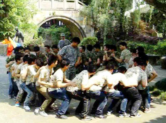 下午13::00分,隨著“破冰”儀式的順利進行,浙江之江管理公司準軍事化野外素質拓展訓練在天柱成拓展基地拉開了序幕。全體學員在訓練場上,聆聽了基地老師對相關情況的簡要說明和對此次活動的期望后,我們就開始了培訓前的熱身。熱身的內容是分小組,給所在的小組命名、設計隊徽、隊訓、創作口號