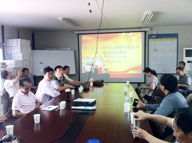 2012年6月10日,公司第二期總監(jiān)交流會在富陽萬科·公望項目部舉行。本次交流會的主題是“交流、進步、共享”。朱森林董事長事長、吳杭副總經(jīng)理、鄭錫榮總工程師、部分主管副總和部門負責人、及30余位各項目部項目總監(jiān)(代表)參加了交流會。