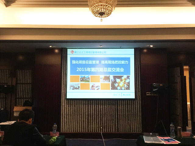2015年11月22日下午13:00分,公司第四期“項目總監交流會”在杭州運河賓館舉行。會議由總經理助理王煒杰主持,公司總經理黃嶺暉,各行政副總,以及在杭工作的40余名國家注冊監理工程師參加了交流會議。