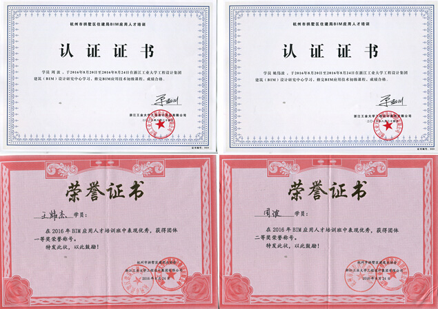 在為期五天的培訓和作品設計中,以某職業(yè)技術學院新建校區(qū)案例,按建設單位、施工單位、監(jiān)理單位聯(lián)動模擬方式分組,最大程度還原現(xiàn)場實際操作中各方的職能和要求,公司委培的4名學員憑借扎實的基礎、高漲的學習熱情,順利完成課程考核,獲得BIM人才培訓初級證書,在最后的培訓考核作品評比中,由公司學員參加的四個小組分別獲得團體一等獎、二等獎和兩個三等獎的優(yōu)異成績。